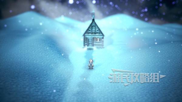 选择【继续】后,来到雪地场景,沿路进入雪地中的屋子。