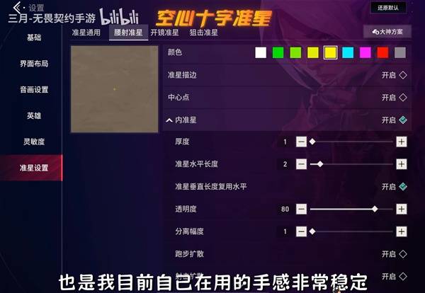 《无畏契约手游》空心十字准星设置分享 MT分享库 2025-12-27 3 空心十字准星是FPS游戏中非常经典的准星样式,那么在《无畏契约手游》中要怎么设置出这样的准星的呢?下面为大家带来《无畏契约手游》空心十字准星设置分享,一起来看看吧。 空心十字准星 置 先关闭:上准星渐隐