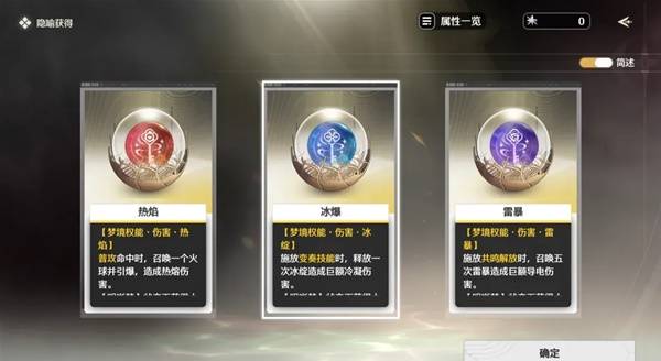 其中梦境权能-伤害分为火、风、雷、冰四种属性,通过不同的战斗机制触发,造成大量伤害