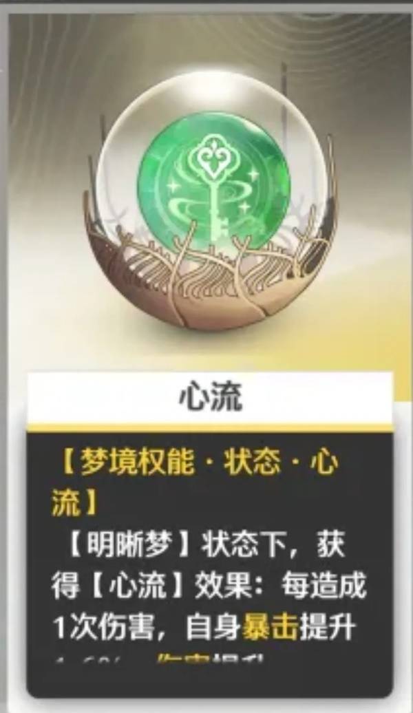 对于流派的选择,有高练度的角色推荐梦境权能-状态中的心流,主打高额暴击暴伤