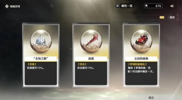 第一关通关后固定给梦境权能隐喻,梦境权能可以视为不同的战斗流派,一共两类七种